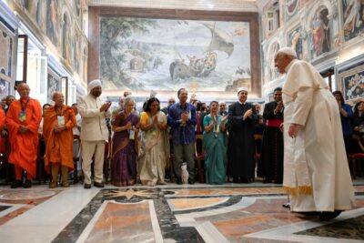 Foto z mezináboženského setkání v květnu 2024, ©vatican media. „Obětovat se, aby se lidé mohli postavit na nohy a kráčet. Tak nás Otec vnímá, ...